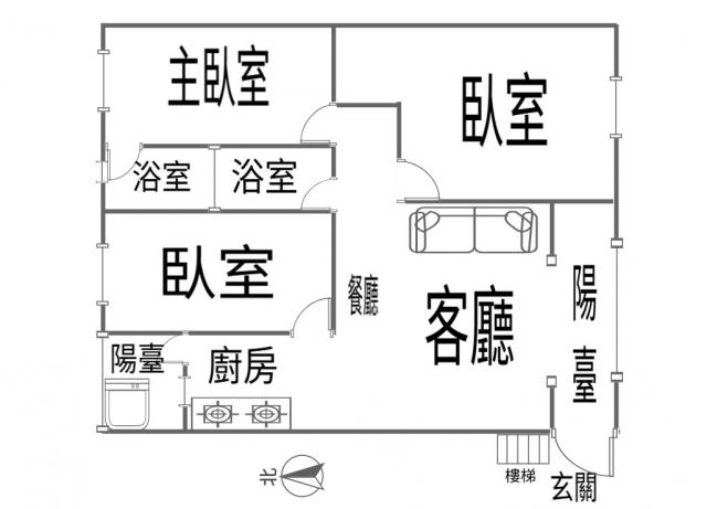 - 格局: 3房(室) 2廳 2衛 2陽台 1廚房