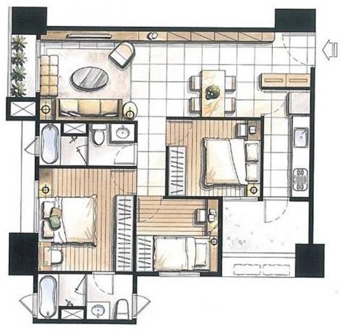- 格局: 3房(室) 2廳 2衛 1陽台 1廚房