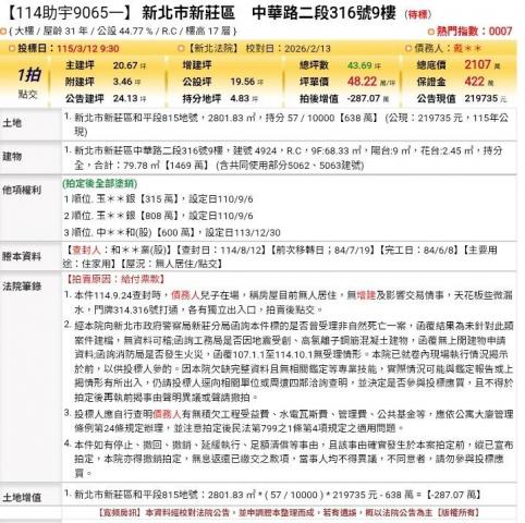 台北法拍專家 新北市三重區集英路62號12樓