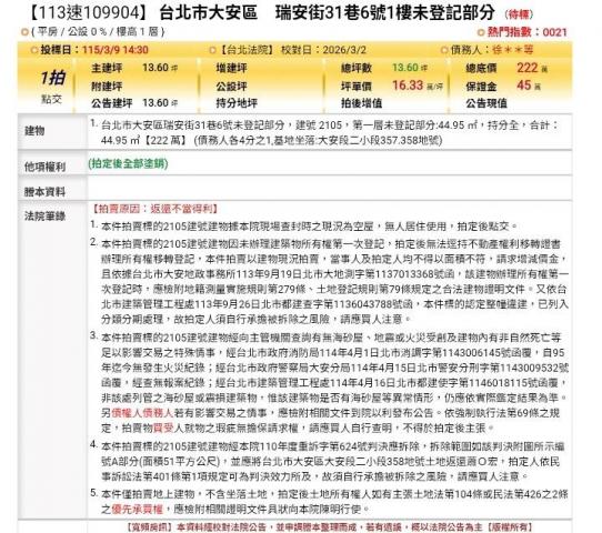 台北法拍專家 台北市大安區敦化南路二段46號13樓之9