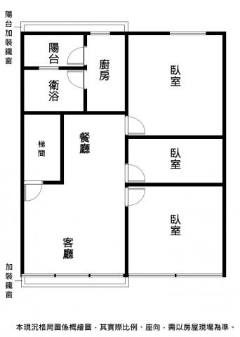 - 格局: 3房(室) 2廳 1衛 1陽台
