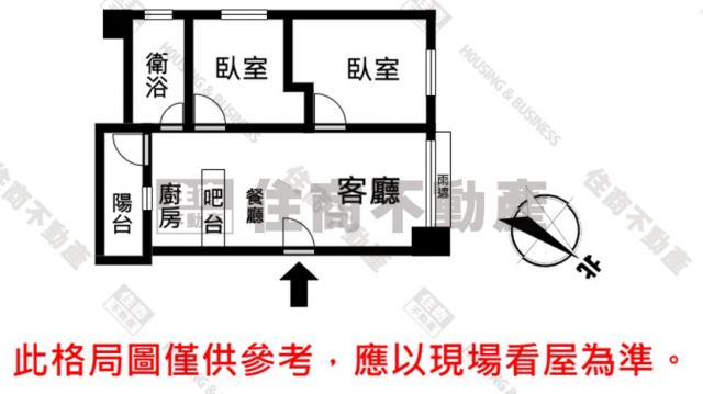 - 格局: 2房(室) 2廳 1衛 1陽台 1廚房