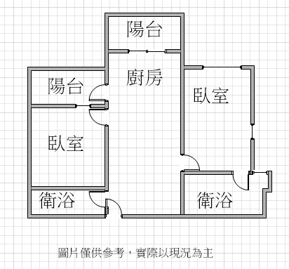 - 格局: 2房(室) 1廳 2衛 2陽台 1廚房