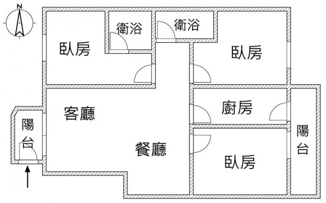 - 格局: 3房(室) 2廳 2衛 2陽台 1廚房