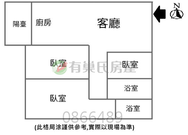 - 格局: 3房(室) 2廳 2衛 1陽台 1廚房