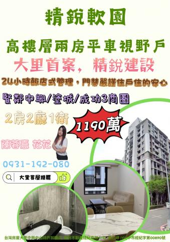 大里買屋推薦 精銳軟園高樓層兩房平車視野戶