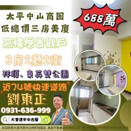| 優勢 (Strengths) | 1. 購屋門檻低:總價 688 萬在台中屬於低总价範圍,適合首購族或預算有限的買家。 2. 交通與生活機能優異:鄰近新光黃昏市場、中山商圈,且靠近國 3 與台 74 號快速道路,通勤便捷。 3. 格局實用:3 房 2 廳 2 衛配置標準,高樓層景觀好,管理費每月 800 元相對低廉。 4. 即買即住:標示屋況優異且無需大整理,省去裝修成本與時間。 |