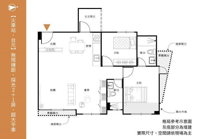 【火車站、台元】永久棟距、邊間2+1房、超大平車
