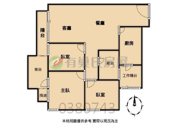 - 格局: 3房(室) 2廳 2衛 2陽台 1廚房