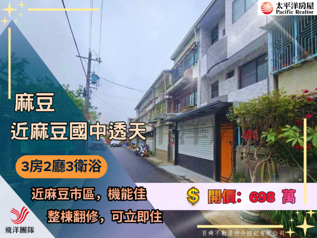 | 優勢 | 居住環境更新: 全棟翻修且電線管路全部更新,提升居住安全與便利性,省卻自購屋後的裝修成本。 地段生活機能佳: 鄰近麻豆國中、公有市場與郵局,交通便利(近興中路),適合有學齡子女的小家庭。 贈送車位: 包含平面式車位,且未計入總坪數內,對於有停車需求的買家相當實用。 價格門檻低: 總價約 698 萬,單價約 26.77 萬/坪,在區域內屬於較具親民力度的價位。 |