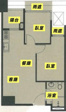- 格局: 2房(室) 2廳 1衛 1陽台 1廚房