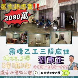 大里透天中古屋 霧峰乙工三照廠住