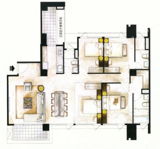 - 格局: 3房(室) 2廳 3衛