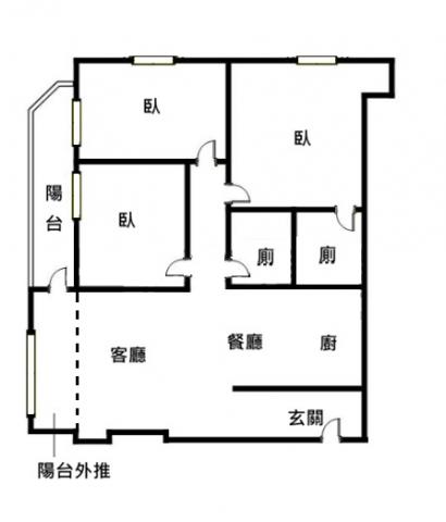 - 格局: 3房(室) 2廳 2衛 1陽台 1廚房