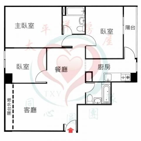 - 格局: 3房(室) 2廳 2衛 1陽台 1廚房