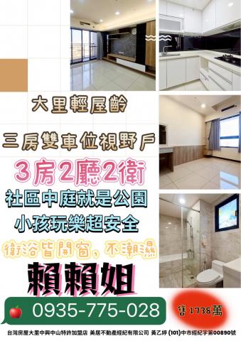 | 機會 (Opportunities) | 議價空間: 文案中明示「開價永遠不等成交價」,表示賣方有意願協商,買者有機會以低於 1738 萬的價格談成。 市場價值: 大里區為台中新興發展熱區,此物件兼具新屋優勢與成熟生活圈,未來轉售或出租需求穩定。 |