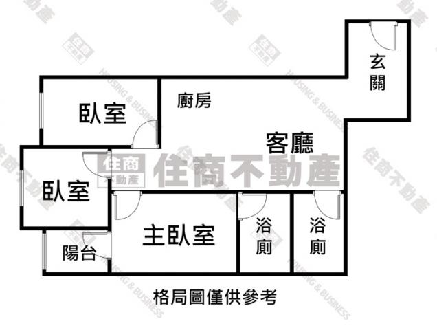 - 格局: 3房(室) 1廳 2衛 1陽台