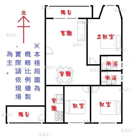 - 格局: 3房(室) 2廳 2衛 2陽台