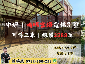 中壢【鳴暘富海】電梯大別墅 快樂的房仲瑞成