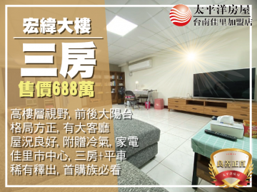 佳里宏瑋大樓大三房+平車 佳里買房買地