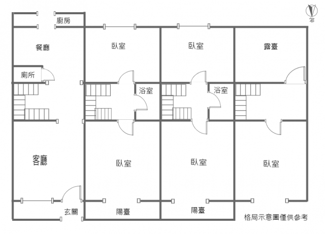 - 格局: 5房(室) 2廳 3衛