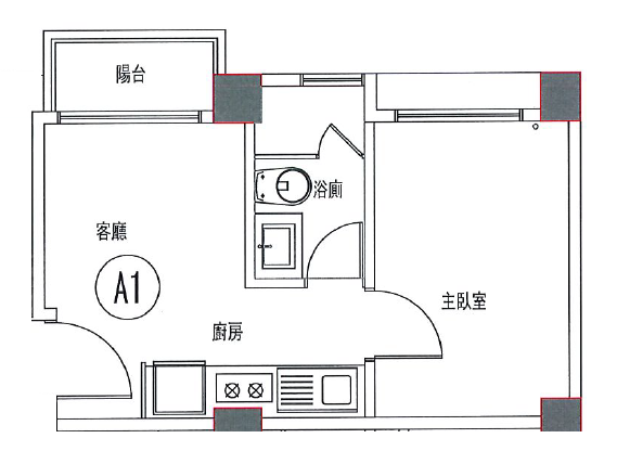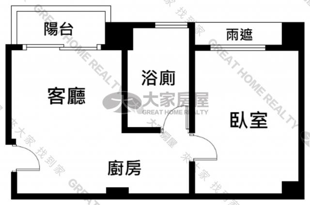 - 格局: 1房(室) 1廳 1衛 1陽台 1廚房
