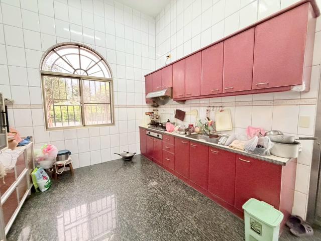 | 優勢 (Strengths) | 1. 空間寬敞實用:總坪數達 106.87 坪,擁有 7 房 2 廳 5 衛,適合大家庭或三代同堂居住。 2. 景觀與造景:庭院已打造完成,包含魚池、果樹(樹葡萄、紅毛丹等)及運動空間,省時省工。 3. 進出便利:前院車道寬敞,大型車輛可迴轉停車,符合現代家庭多車需求。 4. 結構安心:標榜屋主自地自建並加強結構,權狀完整合法。 |