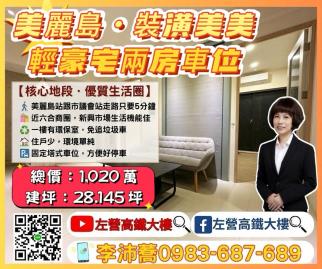 左營高鐵大樓近美麗島裝潢美美輕豪宅兩房+車位