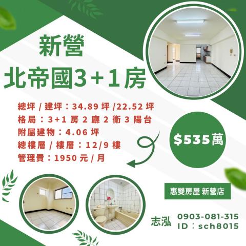 新營房地專家 新營北帝國大樓免整理3+1房