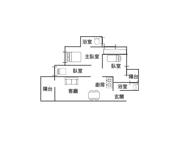 - 格局: 3房(室) 2廳 2衛 2陽台 1廚房
