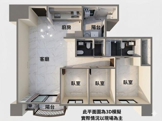 | 劣勢 | 1. 噪音隱憂:社區特色提及「三臨路」,房屋可能面臨車行噪音與粉塵干擾,需考量個人對環境安靜的敏感度。 2. 樓層因素:3 樓屬中低樓層,雖出入便利,但可能影響通風、採光及隱私性,視周圍建築高度而定。 3. 總坪數計算:54.41 坪包含車位,實際室內坪數較小,單價已達 58.45 萬元,購屋成本需精打細算。 |
