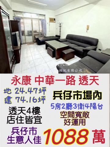 | 優勢 (Strengths) | 1. 地理位置優越: 位於永康區中華一路,緊鄰南科與兵仔市場,生活機能極佳,鄰近家樂福與勝利國小。 2. 租金回報穩定: 一樓已出租且月收 8,000 元,提供初步現金流。 3. 格局適合多口家庭或投資: 總坪數近 75 坪分佈於 4 層樓,擁有 5 房 3 衛,空間靈活性高,易於分租或經營。 |
