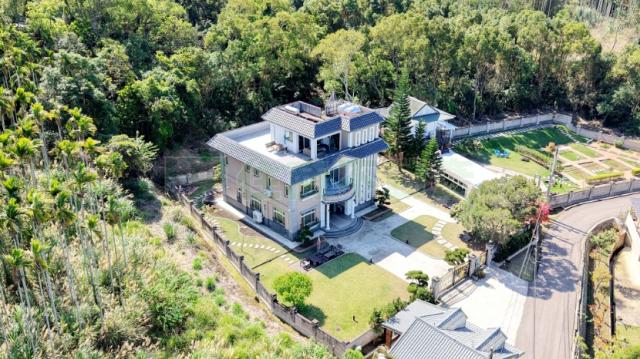 | 優勢 | 1. 空間極為寬敞,總坪數達一百零六坪且為整棟三層樓設計。 2. 建築風格獨特,具羅馬式巴洛克特色與私人冷泉庭園,生活質感高。 3. 配置完善,四房五衛格局適合大家庭居住或長期待客。 4. 鄰近國立聯合大學及苗栗高中,具備潛在的教育資源價值。 |