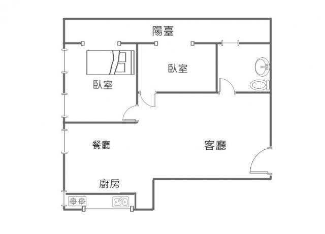 - 格局: 2房(室) 2廳 1衛 1陽台 1廚房
