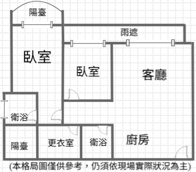 - 格局: 3房(室) 2廳 2衛 2陽台 1廚房