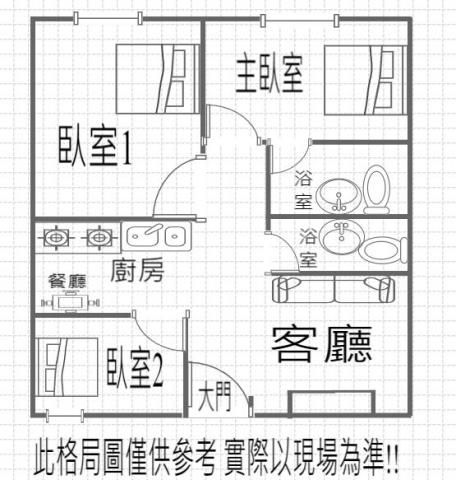 - 格局: 3房(室) 2廳 2衛 1廚房