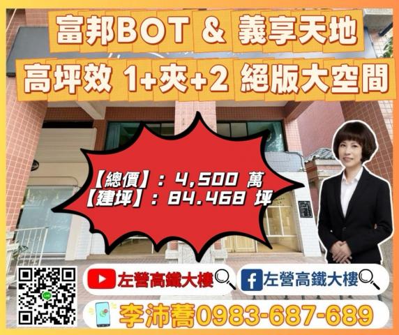富邦BOT&義享天地8米大面寬大坪數1+夾+2左營高鐵大樓
