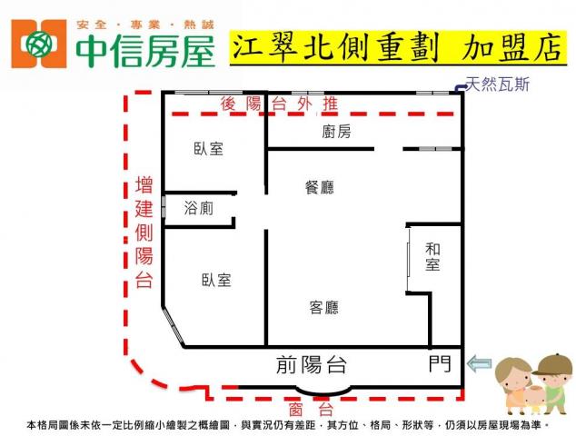 - 格局: 3房(室) 2廳 1衛 2陽台 1廚房