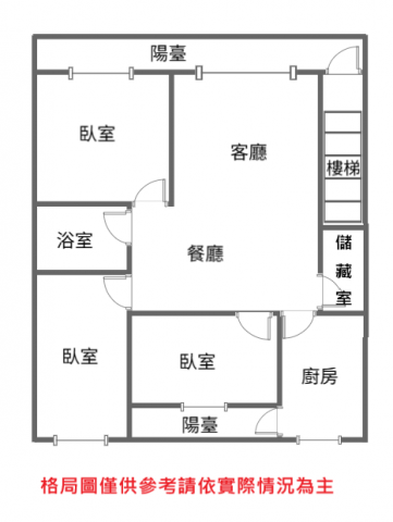 - 格局: 3房(室) 2廳 1衛 2陽台 1廚房