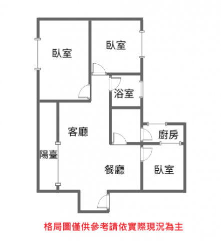 - 格局: 3房(室) 2廳 1衛 1陽台 1廚房