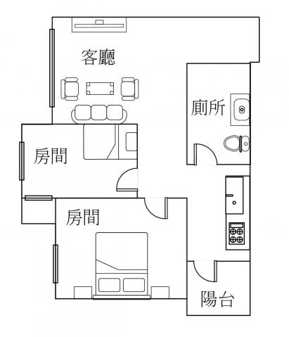 - 格局: 2房(室) 1廳 1衛 1陽台 1廚房