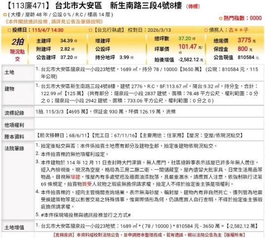 台北法拍專家 台北市大安區新生南路三段4號8樓