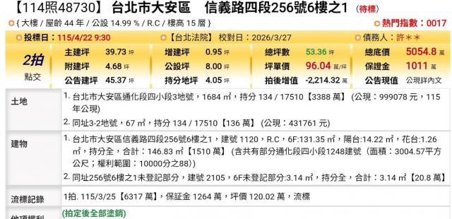 台北法拍專家 台北市大安區信義路四段256號6樓之1