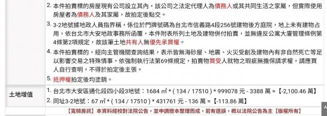 - 資金壓力較大: 拍賣付款期限僅 7 天且需支付 20% 保證金,加上潛在的代墊款利息,對買方的流動性要求極高,需確認資金周轉無虞。