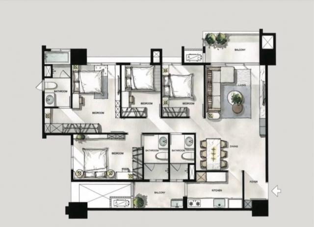 - 格局: 4房(室) 2廳 3衛 2陽台 1廚房