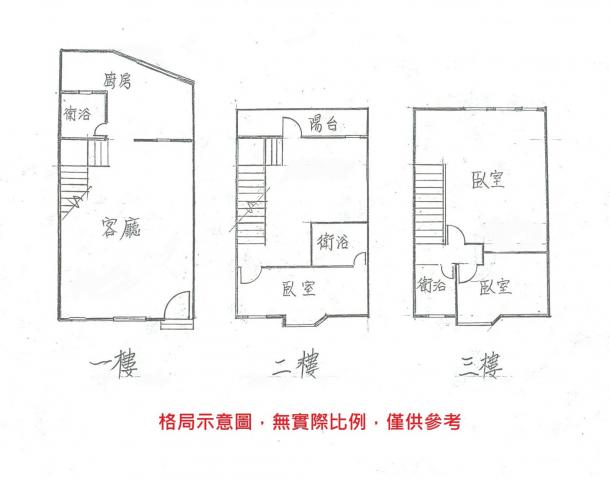 - 格局: 3房(室) 1廳 3衛 1陽台 1廚房