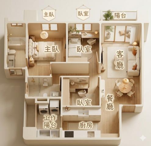 - 格局: 3房(室) 2廳 2衛 1陽台 1廚房