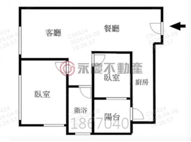 - 格局: 2房(室) 2廳 1衛