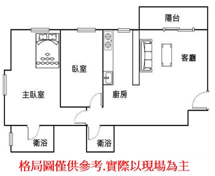 - 格局: 2房(室) 2廳 2衛 1陽台