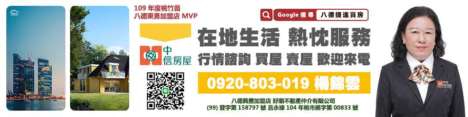 八德捷運買房 八德捷運宅首選 八德學區捷運宅 桃園買房首選 您好!我是您的房仲夥伴,中信房屋楊錦雲0920803019同Line手機24小時不斷電.服務不打烊.非常高興有機會與您分享我的故事。我一直以來都秉持著誠實、專業.負責的態度,並且對每位客戶的需求保持細心和專業的關注。我的工作熱情和幽默感,讓過程不僅輕鬆愉快,還能成為彼此信賴的夥伴。